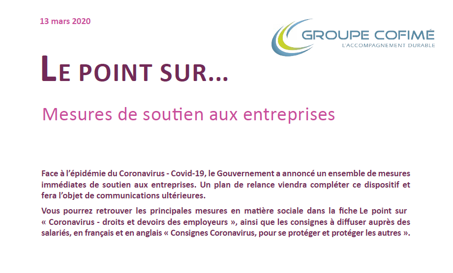 Coronavirus : mesures de soutien aux entreprises