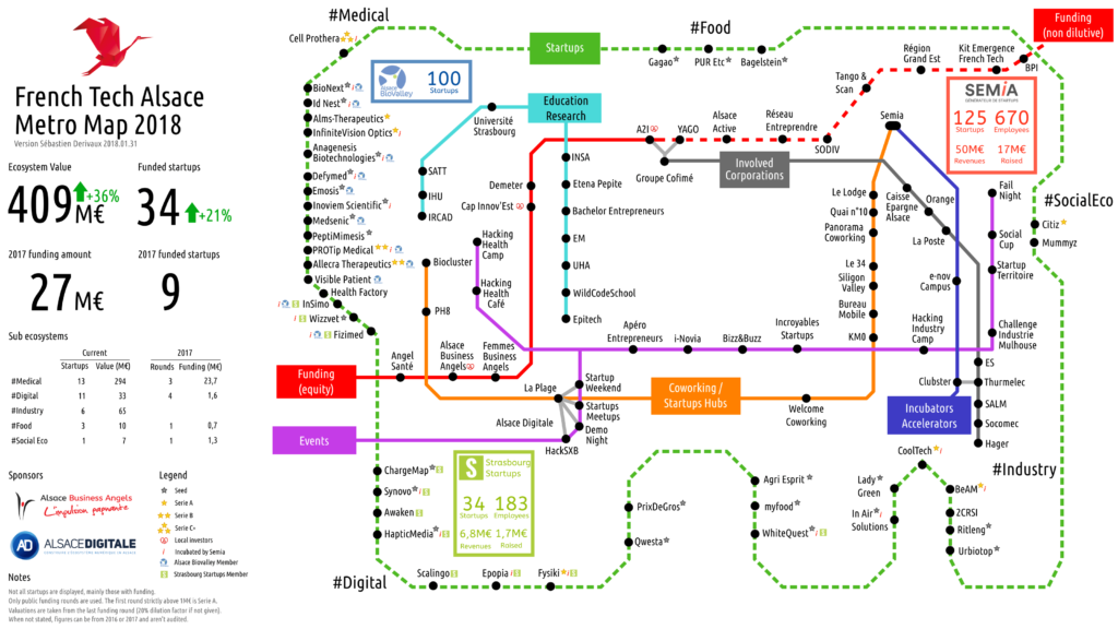 Notre cabinet et sa filiale A 2I, une société d’investissement, sont identifiés comme un des maillons de l’écosystème des entreprises innovantes/high-tech en Alsace (Cf. la carte de French Tech). Nous accompagnons et finançons ainsi plusieurs startupers.