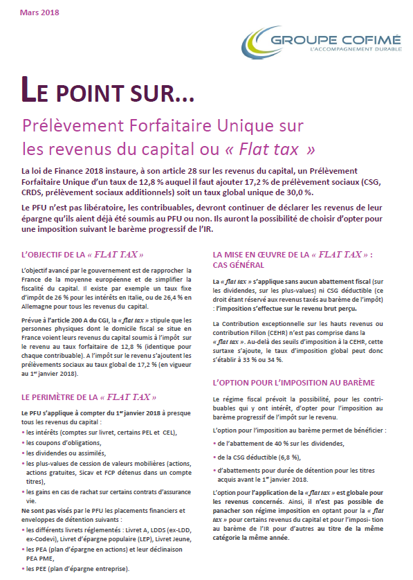 Prélèvement Forfaitaire Unique sur les revenus du capital ou « Flat tax »